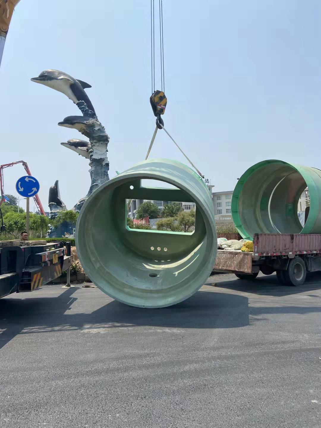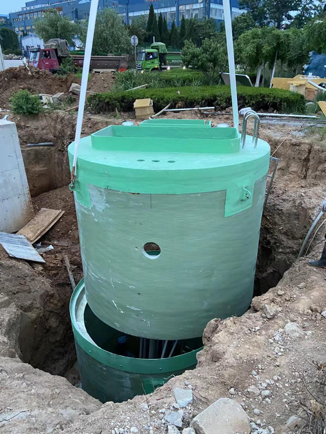 一體化預制泵站由玻璃鋼筒體為主體,內設水泵、管路、閥門、樓梯、維修平臺等,根據客戶要求還可在進水管道后加設粉碎性格柵或提籃式格柵,筒體上設有玻璃鋼頂蓋,是把所有設備及儀表集成在一起的成套設備,因此具有體積小、占地面積小、使用安全、安裝簡便的特點。